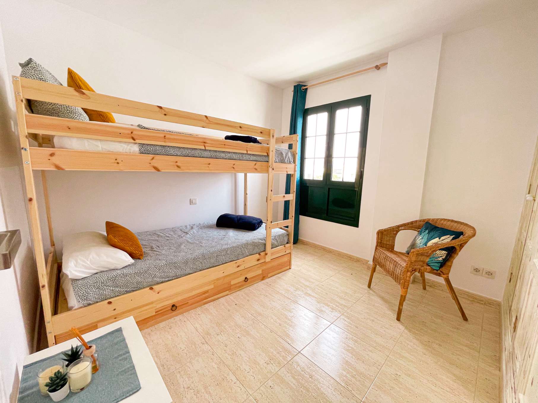 This room contains one set of bunkbeds and a pull-out bed to use for emergencies or a ninth guest. All 3 beds measure 90x190cm. A built-in wardrobe with doors offers… Read moreRead more Room with bunkbeds